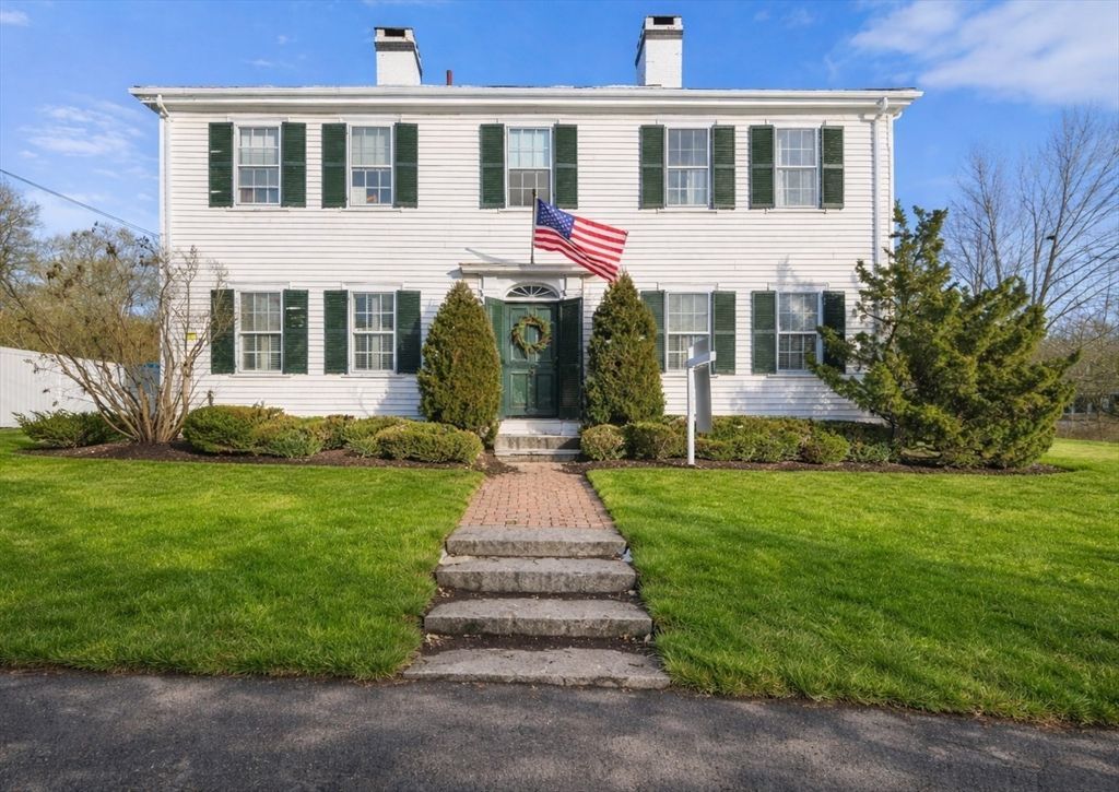 Elegant Federal Colonial in the heart of the village, thoughtfully updated to honor its historic character while offering modern comfort. This exceptional residence features sun-drenched living spaces, wide pine floors, classic fireplaces, custom built-ins, and exquisite period details throughout. The renovated chefs kitchen boasts granite countertops, a spacious center island, and French doors that open to a private brick patio and beautifully landscaped, level grounds. With five bedrooms, six baths, and versatile bonus areas, the home provides ample space for living, working, and entertaining. A charming detached barn and separate one-bedroom apartment offer ideal accommodations for guests, rental income, or multi-generational living. Rarely available in-town location just moments from shops, dining, the train, harbor, and the beach.